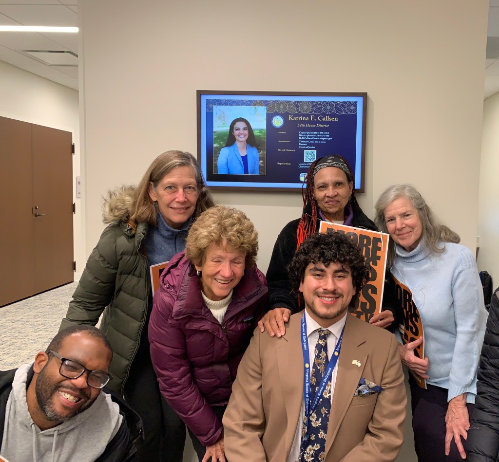 Once again this year, on January 20, we participated in the Gun Prevention Vigil and Rally sponsored by the Virginia Center for Public Safety. VCPS is a non-partisan group as is our own Charlottesville Coalition for Gun Violence Prevention. We rode a bus to the Bell Tower in Richmond (within walking distance of legislative office buildings). Yes, it was cold, but our hearts were warm, made warmer still by the many friends we met and made there. This year, youth from UVA’s Team Enough rode with us on our bus. After the rally, we met with our legislators to demand that they take action on sensible gun bills that will make our Commonwealth safer. Enjoy the pics! And here is the news coverage we received from 29 News! Judy was our awesome spokesperson! https://www.29news.com/2025/01/21/charlottesville-gun-violence-activists-load-up-head-general-assembly/
